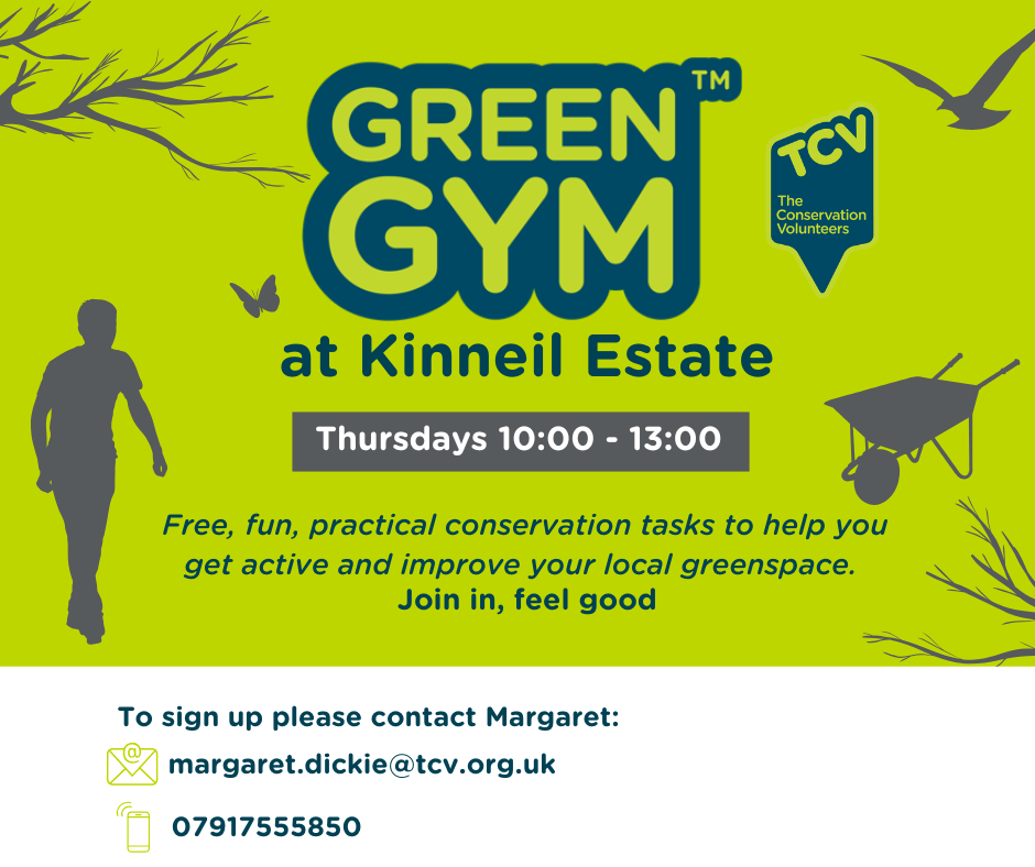 Following the appointment of a new project officer, The Conservation Volunteers (TCV) for Scotland are continuing their Green GymTM sessions at Kinneil Estate in Bo’ness on Thursday mornings between 10am and 1pm. The sessions are open to all volunteers from the community.