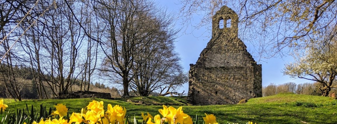 The parish church was moved into Bo’ness in the 17th century and then in 1745 the old Kinneil church was partly destroyed by fire. All that remains is the western gable end and some historic gravestones. A bell from the church can be seen in Kinneil Museum. Look out for spring daffodils, planted around the church.